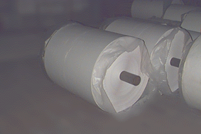 書道用紙のできるまで 〜 抄紙 〜 紙の原料を網にすくい、乾燥して紙にします。網 の方式で「パルプ半紙」「模造半紙」に別れます。 丸網(パルプ半紙) 紙の原料が入った器に筒状の網をいれ、中と 外との水位差により網の表面に繊維を均一に乗 せていく 短網(模造半紙) 平たい網の上に紙の原料を乗せ水を切ってい く。手漉(溜め抄き)に近い雰囲気。 抄きあがった紙 ジャンボロールと言っても、半紙のロールは 直径約1m。この1本書道半紙約12万枚分